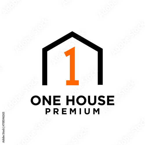one 1 house home letter logo icon design template