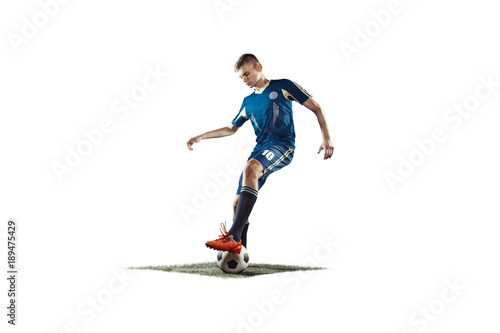 soccer, isolated, 1, football, man, studio, playing, kicking, people, sport, action, practicing, jumping, player, player, white, background, ball, young, caucasian, male, person, kick, sportsman, shot, athlete, professional, balance, lifestyle, single, skilled, skilful, sport, activewear, talent, talented, jersey, adult, volley, 20s, blast, determination, determined, difficult, expert, good, guy