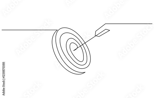 One Continuous Line Drawing of Goals Icon. Single Line Vector Illustration, Continuous one line drawing of target icon. abstract line art illustration of archery target symbol.