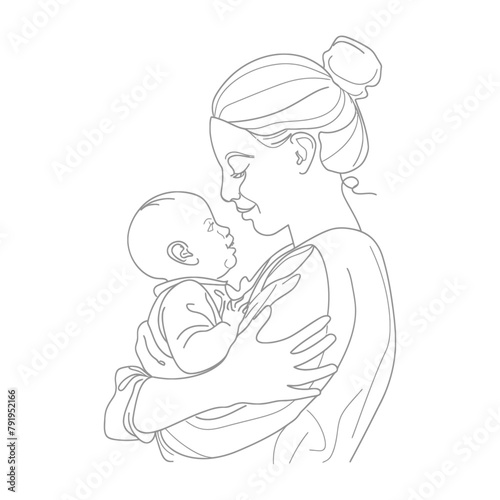 1, continuous, line, drawing, mother, holding, baby, black, colours, only