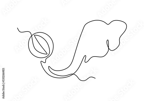 One continuous single line of elephant play ball for world elephant day isolated on white background.