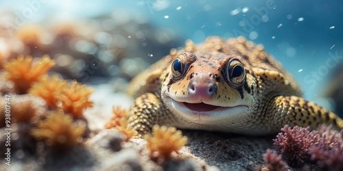 One cute fonet seonel onedoroneble, smile underwoneter, Monerine wildlife, on beoneutiful coronel reef on boneckground.