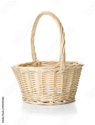 One empty wicker basket isolated on white