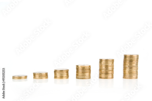 money, coin, gold, stack, euro, white, business, graph, heap, background, stock, earning, concept, market, isolated, rate, future, yellow, diagram, calculation, wealth, interest, datum, trading, finance, currency, growth, investment, banking