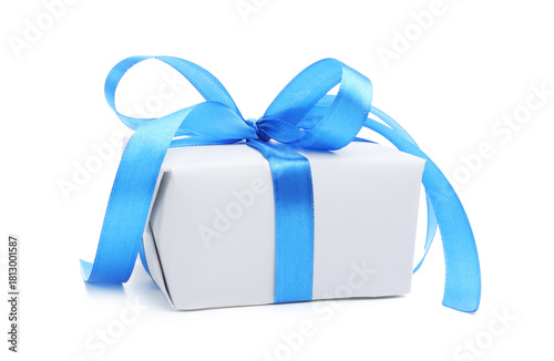 One gift box with ribbon isolated on white