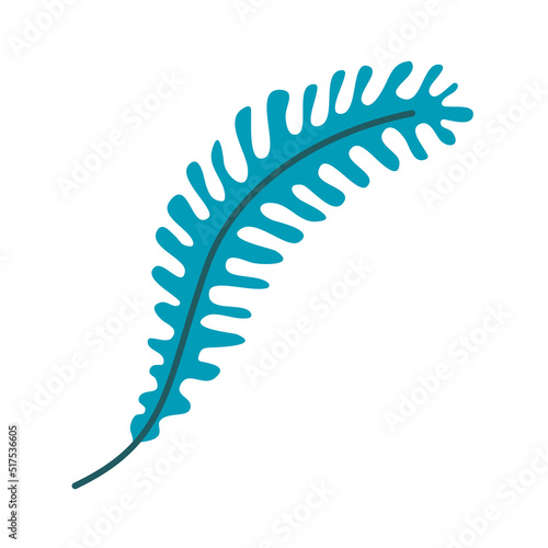 One green fern leaf. Decoration plant and flower. Nature and flora. Flat vector illustration isolated on white background