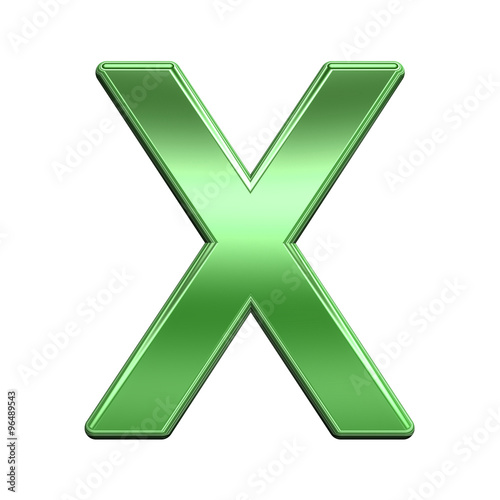 One letter from shiny green alphabet set, isolated on white. Computer generated 3D photo rendering.