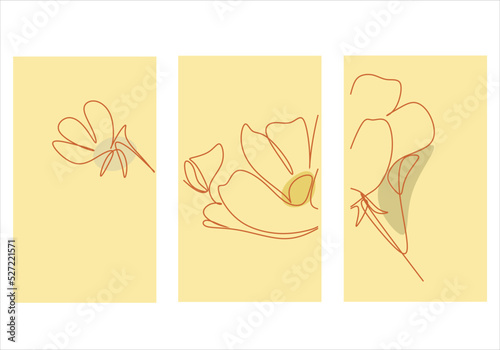 One line drawing set of vector flowers. Botanical poster. Modern single line art, aesthetic outline. Ideal for home decor, wall art posters or t-shirt printing, mobile case. Continuous line drawing