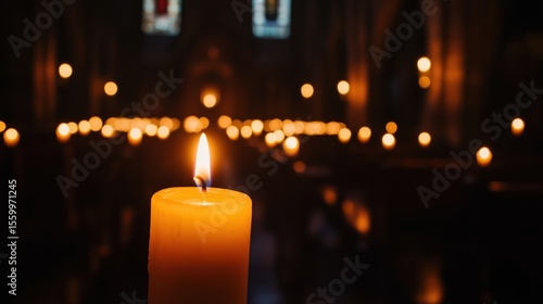 candle, lit, among, extinguished, dark, church, light, hope, faith, religion, spiritual, worship, prayer, solitude, contrast, symbolism, sacred, quiet, peace, meditation, atmosphere, moody, solemn, reverence, devotion, mystery, glow, shadow, flicker, ritual, tradition, resilience, memory, remembrance, surrender, perseverance