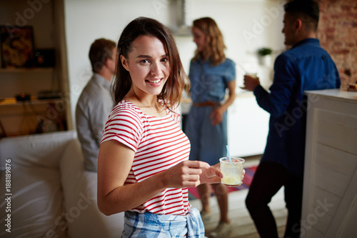 people, woman, man, drink, cocktail, festive, home, group, celebration, party, holiday, glasses, girl, girlfriend, boyfriend, guy, friends, young, adult, polygamy, gathering, get-together, happy, smiling, looking, brunette, mojito, lemonade, homemade