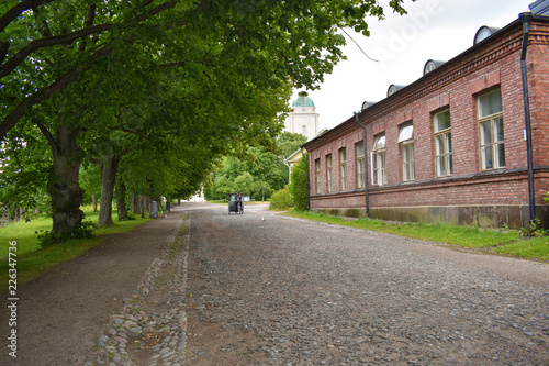 One of the many buildings and streets inside the Suomenlinna Sea Fortress in Helsinki, Finland. Suomenlinna is a UNESCO World Heritage Site.