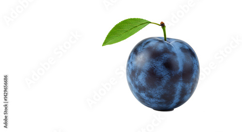 One ripe plum with green leaf