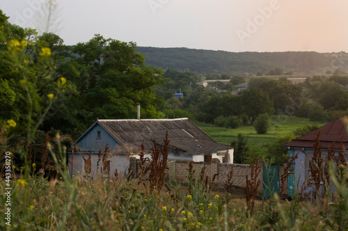 house, farm, sky, village, landscape, rural, building, nature, green, grass, mountain, country, architecture, home, old, blue, forest, countryside, bungalow, tree, field, wood, summer, hut, agriculture