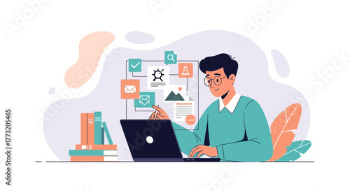 business, work, online, communication, laptop, digital, marketing, strategy, development, technology, cyberspace, design, businessman, success, office, network, datum, information, analysis, electronic mail, connection, processing, management, presentation, project, planning, solution, workflow, idea, achievement, research, document, screen, contraption, workspace, modern, young, creative, guy, man, computer, smart, message