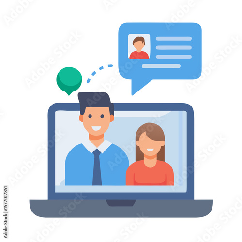 communication, online, laptop, chat, bubble, people, connection, digital, technology, cyberspace, conversation, social, media, networking, business, meeting, video, call, virtual, remote, teamwork, collaboration, message, icon, illustration, flat, design, graphic, user, interface