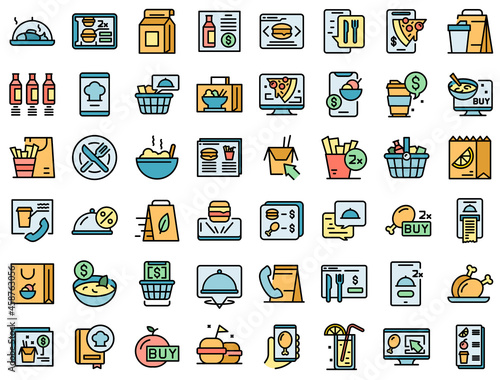 Online food ordering icons set outline vector. Delivery drink. Tasty away food