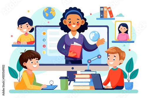teacher, computer, education, learning, student, studying, communication, cyberspace, children, computer monitor, explaining, classroom, cyberspace, online, technology, connection, wireless technology, homework, quarantine, listening, school, talking, lesson, cognition, elementary school, distance, support, remote, togetherness, meeting, watching, college, network, seminar, teamwork, examining, instructor, information, virtual, innovation, sharing, wisdom, pandemic