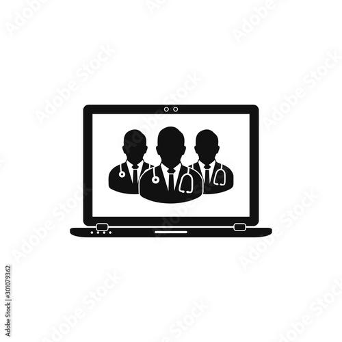 online, medicals, service, team, group, icon, doctor, nurse, computer, laptop, notebook, support, help, advice, physician, vector, signs, symbol, illustration, silhouette, flat