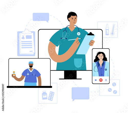 doctor, online, medicine, app, phone, computer, smartphone, laptop, team, diagnostic, information, design, web, people, video, virtual, black, care, cartoon, clinic, concept, consultation, diagnosis, flat, health, help, hospital, illustration, medic, medicals, service, therapy, vector, communication, call, mobile, website, screen, pharmacy, prescription, stethoscope, drug, man, male, female, woman, support, surgeon, practitioner