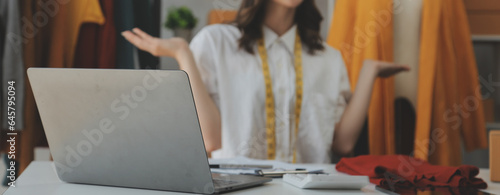 Online seller owner. Online shopping. Business Start up SME concept. Young startup entrepreneur small business owner working at home, packaging and delivery situation.