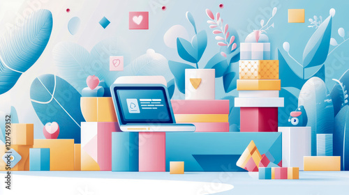 Online Shopping: A Pastel Celebration of Gifts and E-commerce