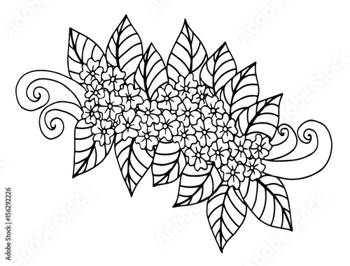 oodle floral pattern in black and white. Page for coloring book: very interesting and relaxing job for children and adults. Zentangle drawing. Flower carpet in magic garden
