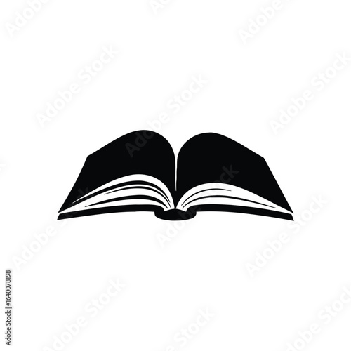 open book, black, white background, solid, symbol, reading, education, library, literature, learning, cognition, school, study, textbook, cyclopaedia, cover, page, signs, open, publication, flat, silhouette, outline, shape