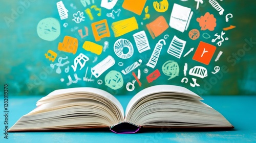 book, cognition, education, learning, icon, open, teal, background, concept, idea, school, student, study, wisdom, information, library, literature, text, reading, research, paper, document, design, creative, illustration, graphic, digital, technology, innovation, growth, success, future, progress, development, strategy, planning, inspiration, imagination, discovery, insight, understanding, intelligence, potential