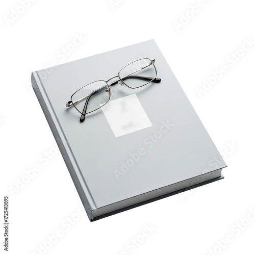Open book with a blank cover and reading glasses placed on top in a quiet setting suitable for studying or reflecting