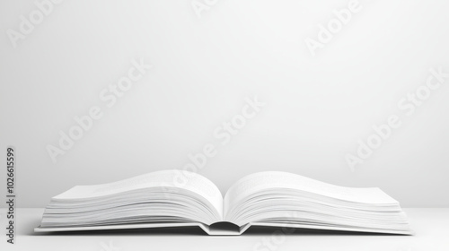 Open book with blank pages on a white background, ideal for presentations and mockups.