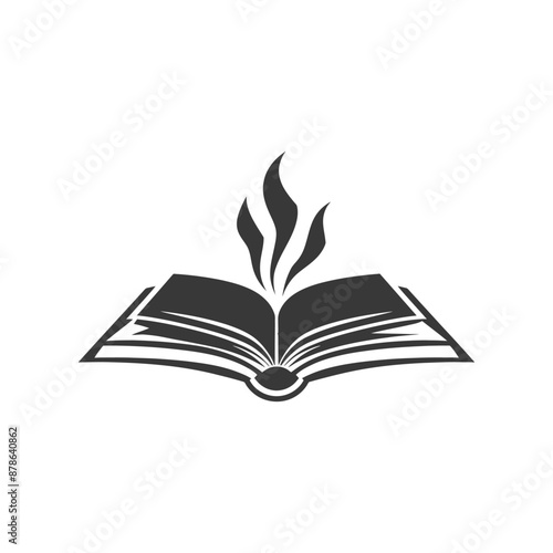 book, open book, flames, fire, cognition, learning, education, wisdom, nirvana, magic, mystical, fantasy, logotype, design, symbol, vector, illustration, graphic, abstract, silhouette, greyscale, monochrome, simple, minimalist, elegant, powerful, inspiring, creative, concept, idea, book cover, website, banner, branding, emblem