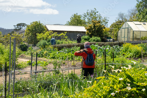 open community garden growing flowers and vegetables with families and children exploring nature in australia