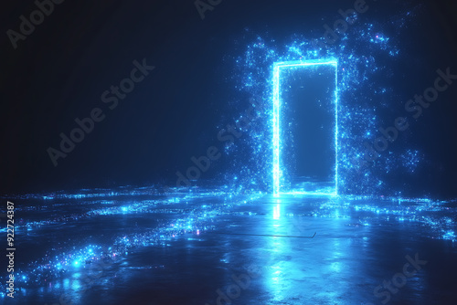 open door, light, icon, wireframe, silhouette, logotype, dark blue, opportunity, digital, design, minimalistic, modern, symbol, glowing, entrance, door, blue background, pathway, abstract, future, innovation, possibility, technology, graphic design, doorway, inspiration, potential, exit, transition, hope, business, success, direction, portal, gateway, illumination, vector, outline, simplicity, digital artwork