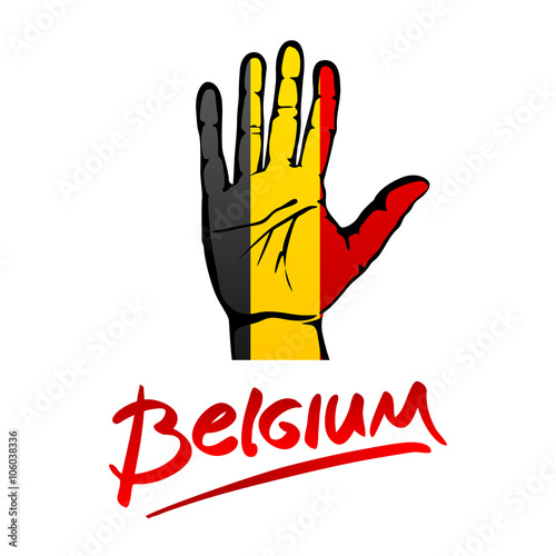 Open hand painted Belgium flag painted. lettering hand-written Belgium