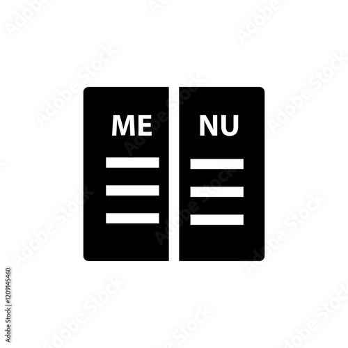 Open menu book icon, symbolizing dining options, recipes, or restaurant services.