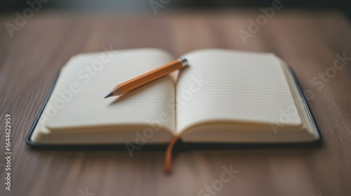 Open notebook with pencil on table in peaceful indoor setting