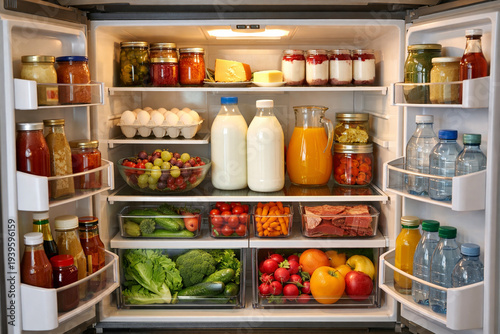 food, cheese, juice, drink, egg, fruit, vegetable, refrigerator, refrigerator, open, healthy, organic, fresh, organised, storage, kitchen, dairy, milk, container, broccoli, carrot, tomatoes, grape, apple, orange, yogurt, meat, interior, appliance, household, lifestyle, nourishment, grocery, clean, modern, domestic, cold, preservation, abundance, wellness, diet, ingredient, home, chilled, shelf, bottle