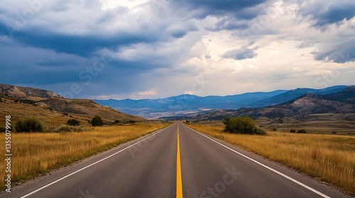 Open Road Stretching Through Scenic Countryside Under Dramatic Cloudy Sky : Generative AI