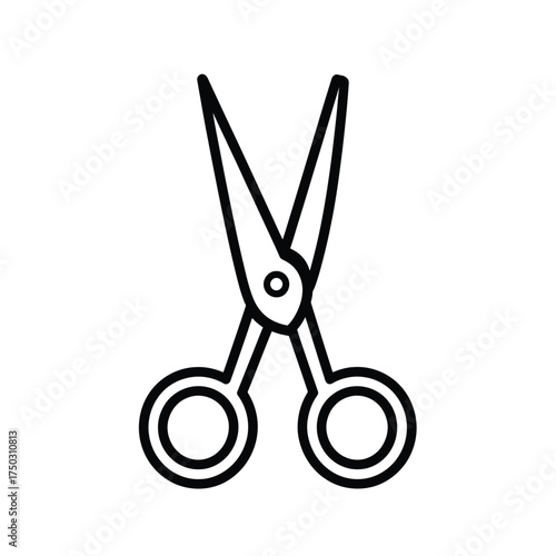 scissors, outline, open, blade, sharp, handle, round, equipment, tool, cut, shape, symbol, pictogram, barbershop, hairdresser, cutting, line, clip, signs, flat, work, metal, instrument, craft, shear, stationery, office, tailor