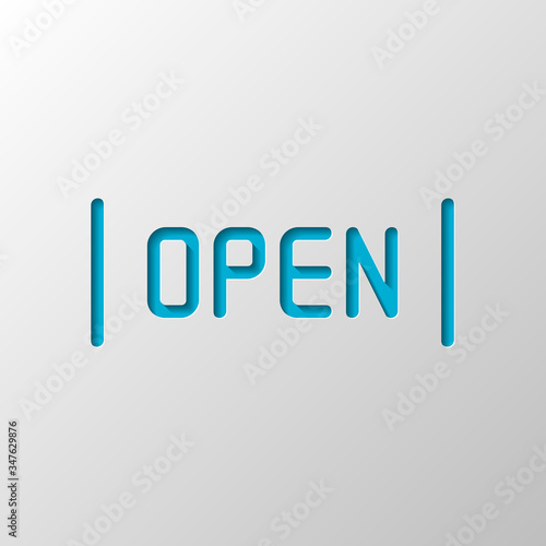 Open tag or label for shop, outline design. Paper design. Cutted symbol with shadow