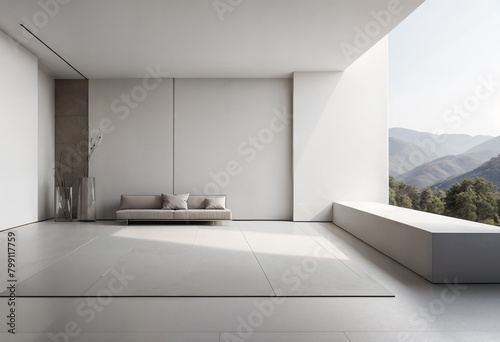 Open terrace of a modern minimalist villa with wide panoramic landscape view