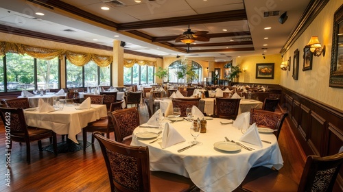 Open-concept restaurant with spacious seating arrangements and peaceful ambiance