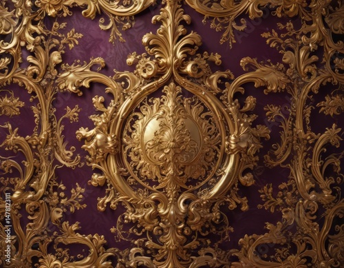 Opulent baroque wallpaper, gold swirls, rich jewel tones, luxury design, rich color