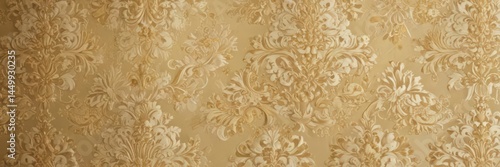 Opulent gold and cream damask wallpaper, embossed texture , elegant design, cream, pattern