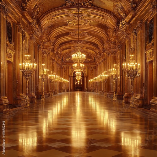 hallway, gold, opulent, ornate, architecture, interior, design, luxury, elegance, light, marble, floor, column, arch, ceiling, detail, rich, expensive, style, palace, ballroom, perspective, symmetry, vintage, classic, refined, royals, grand, elaborate, bright, illumination, shine, glimmer, glow, gold, polished, art, decorative, baroque, historical, formal, long, impressive, texture, surface, pattern