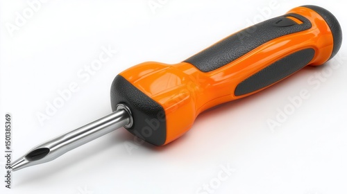 screwdriver, tool, orange, grey, repair, maintenance, handyman, construction, work, equipment, contraption, instrument, object, isolated, copy space, white background, studio, industrial, product, detail, closeup, precision, quality, professional, hand tool, fixing, manufacturing, production, mechanical, technical