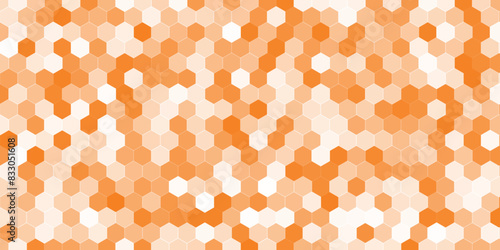 Orange and white mosaic honeycomb marble image. Beautiful hexagon tile wall marble background.