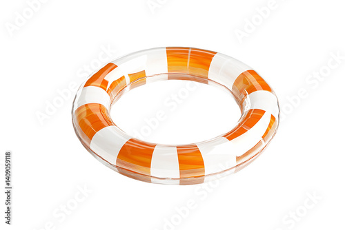 Orange and White Striped Inflatable Life Ring on Transparent Background, PNG