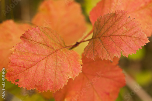 orange autumn leaves on a branch of a tree