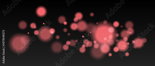 Orange bokeh. Glowing blurred light spheres on dark background, abstract glow effect with soft focus and floating particles for festive or winter design.